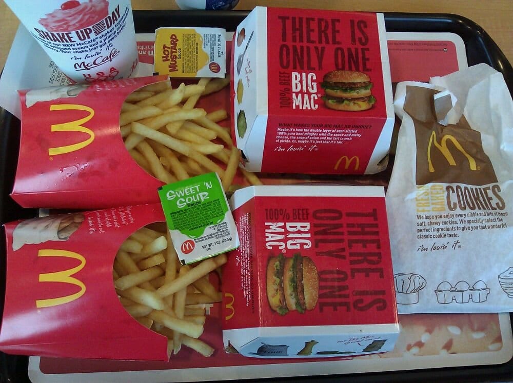 2 Big Mac Meal 7.40, 13 pack of cookies (2 Oatmeals, 1 Chocolate Chip) 1, 2 Medium Powerade