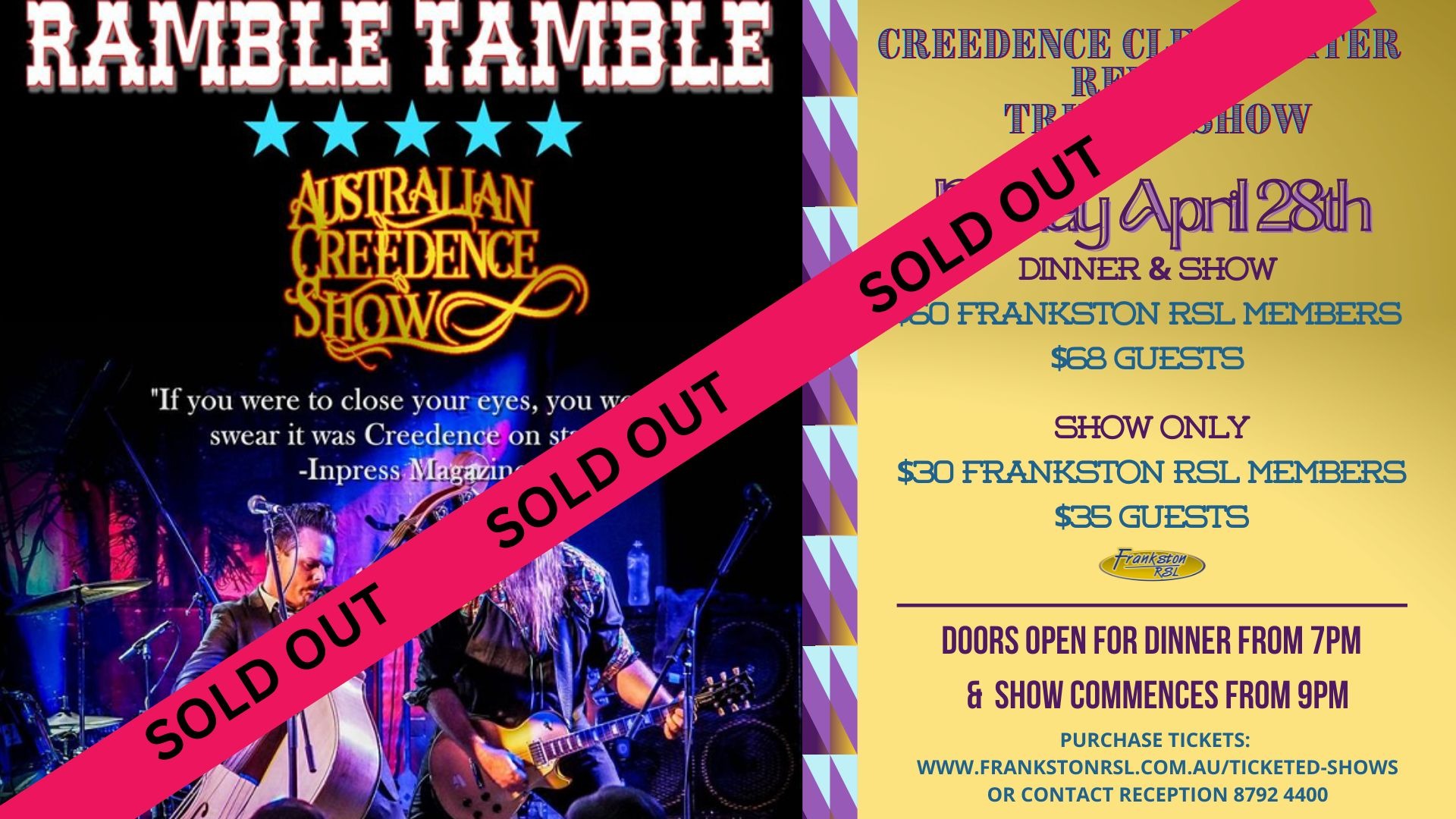 2023 Creedence Clearwater Revival Tribute Tickets, Frankston RSL, Frankston TryBooking Australia