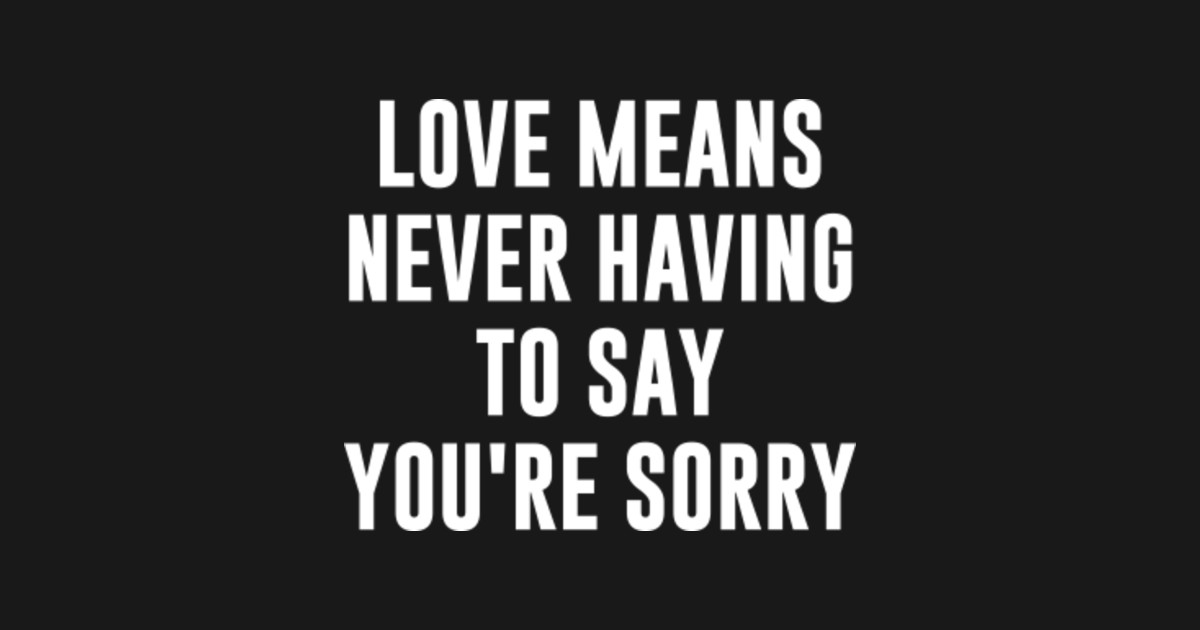 "Love means never having to say you're sorry" can be interpreted in two ways. The first, and less dangerous, is the interpretation that if your love is real, you never have to say you're.