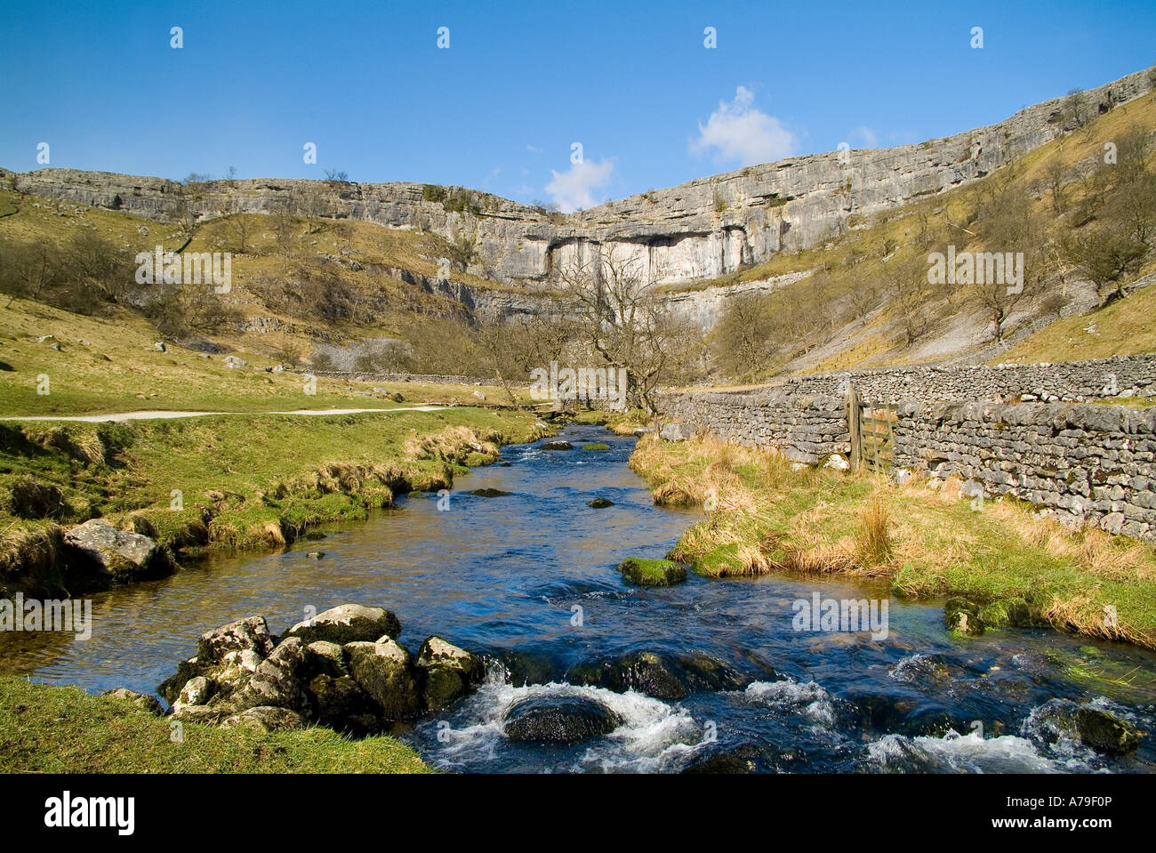 The stream that flows out of the bottom of Malham Cove, North Yorkshire, England, United Kingdom