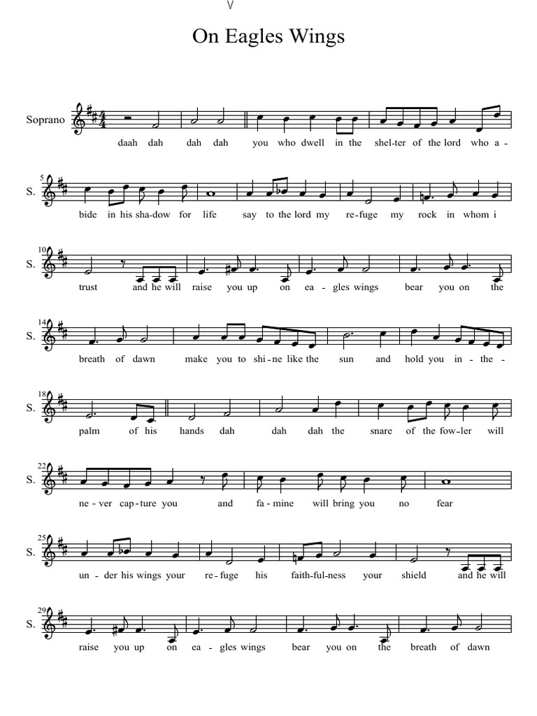 On Eagle's Wings (with lyrics)You who dwell in the shelter of the Lord,Who abide in His shadow for life,Say to the Lord, "My Refuge,My Rock in Whom I trust.".