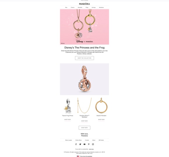 Join our rewards program today to earn points, get personal offers and enjoy exclusive benefits. Collect characters from the stories close to your heart with bestselling Disney x Pandora jewelry. Capture the magic of your favorite Disney moments with charms, bracelets, necklaces, rings and more.