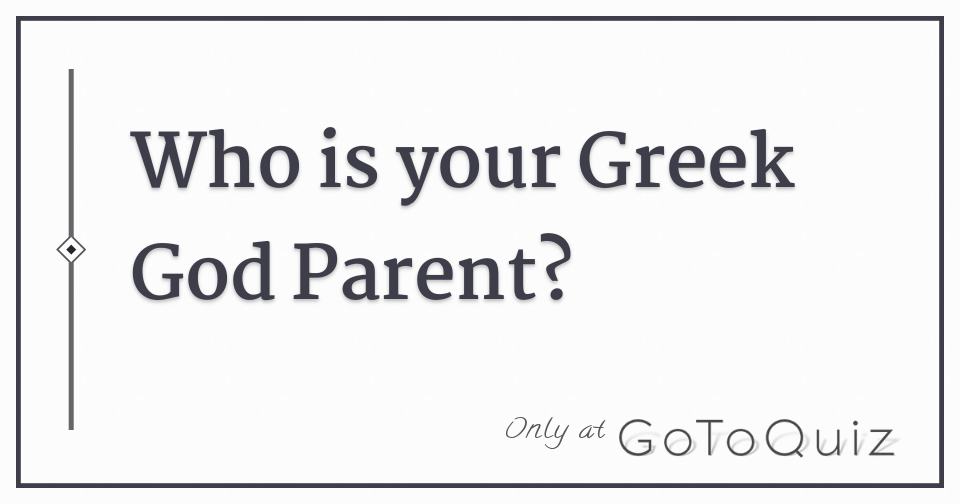 Show discussion 251 . If you want to know who is your Godly Parent in the Greek Mythology, this quiz is for you. The results contain all the major gods, except Hera because of what she is the goddess of. I wanted to do a quiz that would the most accurate possible, so the questions and the answers are not biased.